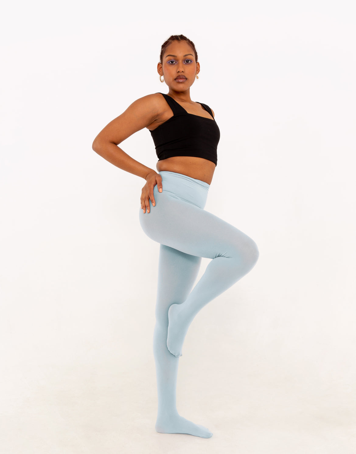 Sweet baby blue, we love you. Your soft sensuality + head-in-the-clouds color make us feel beautiful and at ease. Wrapped in your seam-free comfort, our legs get a hit of pure bliss. Merci for being everything we wanted—and more—in a pair of 50-denier tights. Our outfits thank you, too.